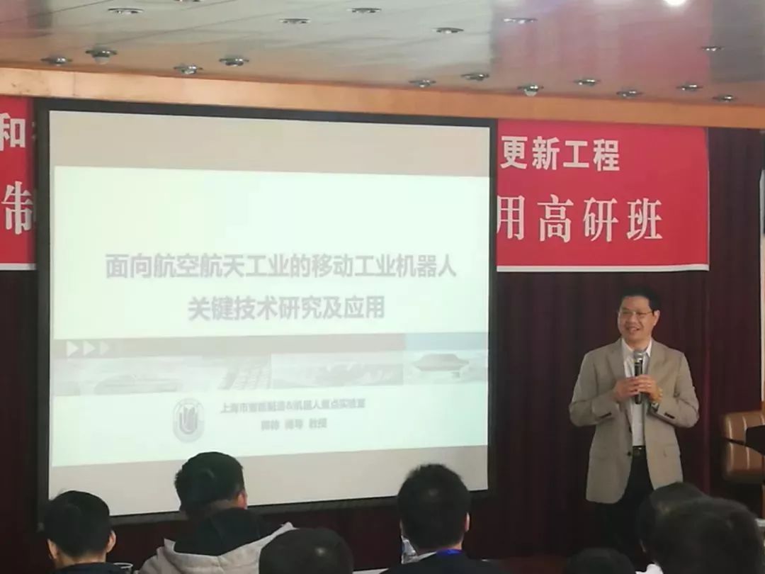 JIUYOU.COM九游(中国)机器人有限公司官网副院长郭帅近日就航天航空领域移动机器人发表《面向航空航天工业的移动工业机器人关键技术研究及应用》,并于10月25日受上海大学上海经济中心主办的智能制造与机器人技术应用高级研修班邀请,与在座同学老师共同分享。