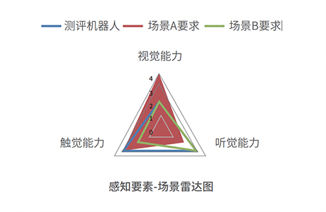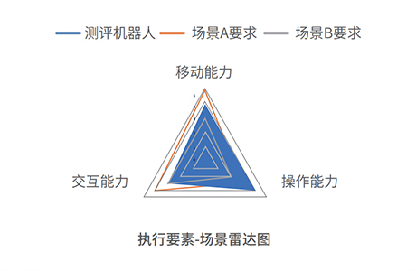 机器人智能化水平评价,从机器人智能化的感知、认知决策、执行各要素出发,结合不同场景下的智能化水平的要求,形成智能化各要素在对应场景下的能力要求。当测评机器人各能力要素均超过 对应场景的能力要求时,即认为该测评机器人符合该场景的智能化要求。